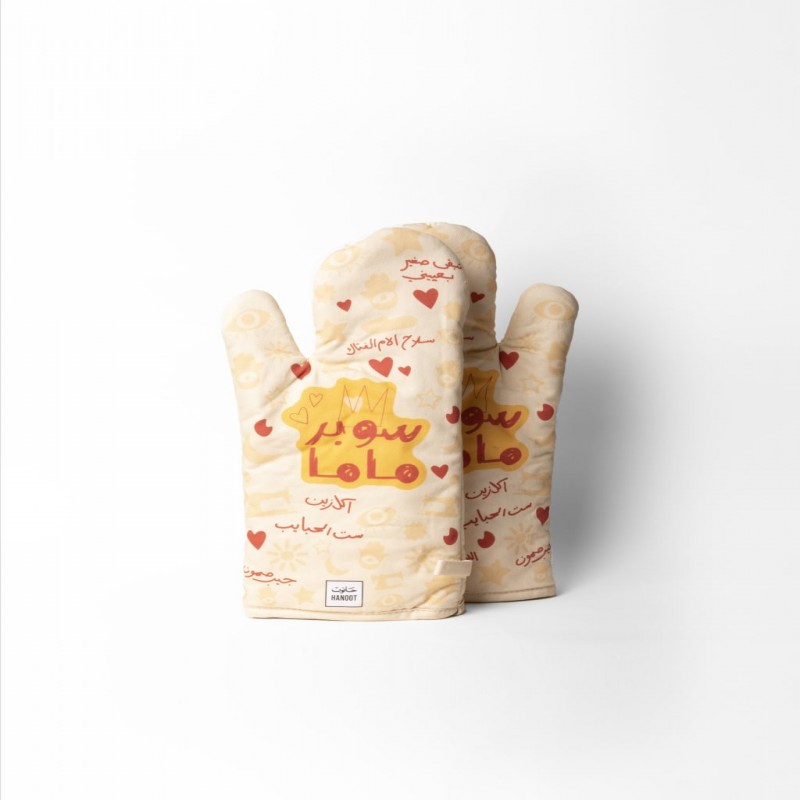 طباعة سوبر ماما: يتميز التصميم متعدد الألوان بطبعة "سوبر ماما" ، مما يضيف عنصرًا مبهجًا وتحفيزيًا لقفازات الفرن. إنها هدية رائعة للأمهات اللواتي يعشقن الطبخ أو الخبز.